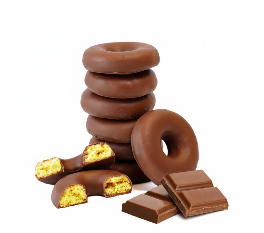 Dompel jezelf onder in de wereld van chocolade met onze eiwitrijke choco rings. Deze vijf donuts zijn speciaal voor chocoladeliefhebbers, en ze zijn hier om je smaakpapillen te verwennen. De combinatie van chocoladesmaak en luchtige, knapperige textuur maakt ze tot de perfecte snack, op elk moment van de dag.