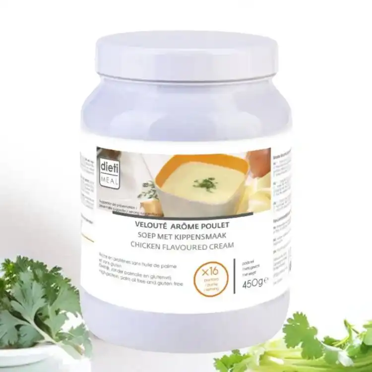 Een hartige soep, een klassiek recept met lekker kip aroma. Bij voorkeur ’s middags of ’s avonds te gebruiken, samen met groenten. Bevat 16 à 17 porties