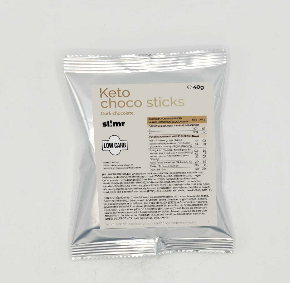 Koolhydraatarm : Keto-chocosticks zijn zo samengesteld dat ze weinig koolhydraten bevatten, waardoor ze een ideale optie zijn voor koolhydraatarme en keto-diëten.