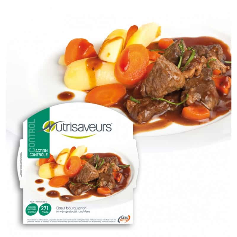 Malse stukjes rundvlees vergezeld van malse aardappelen, in een saus op smaak gebracht met rode wijn. Trakteer uzelf op dit kant-en-klare afslankgerecht uit het assortiment Control Nutrisaveurs, waarmee u uw figuur kunt verzorgen en plezier centraal kunt stellen!