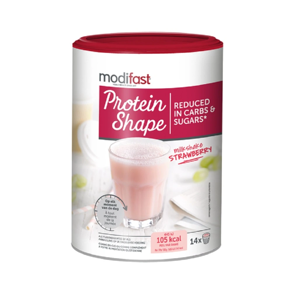 De Protein Shape Milkshake Strawberry is een verantwoorde en fruitige shake met aardbeiensmaak die zo klaar is. De milkshake is te gebruiken in het Modifast Protein Shape programma, maar hij is ook ideaal als onderdeel van een koolhydraatarm dieet. De milkshake is ook lekker als tussendoortje na het sporten.