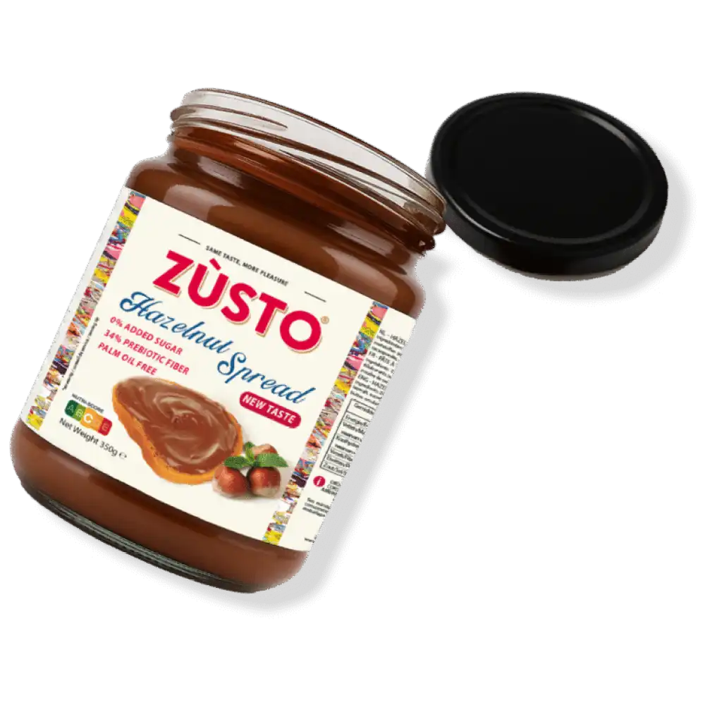Zùsto heeft bovendien 50% minder verzadigde vetten, 86% minder suikers in vergelijking met traditionele hazelnootspreads en 0% toegevoegde suikers. Daardoor is deze ook uiterst geschikt voor diabetici en mensen met overgewicht.
